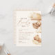 Celebrar a mãe a estar com este convite suave e caprichoso... podemos esperar o convite neutro do Chá de fraldas. Apresentando um ursinho de peluche aquoso flutuando em um balão de ar quente entre nuvens fofinhas, este design de tom neutro combina tons quentes de bege, um encanto confortável e uma cena de céu sonhador. Perfeito para um chá de fraldas neutro em relação ao gênero ou um borrifo com o tema do ursinho, a elegante mistura de serif e tipografia de script o mantém eterno. Personalize facilmente com seus detalhes de chá para torná-lo exclusivamente seu!
