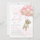 Este design querido apresenta um ursinho de pelúcia flutuando no ar por um buquê de balões.