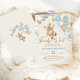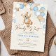 Podemos esperar o convite de chá do bebê do sexo. Design de tendências em cores azuis, bege e cinza neutras. Apresenta ursinho de pelúcia agudo, letra de guião de balões e estrelas. Perfeito para uma elegante celebração de chá estilo boho. Personalize com seus próprios detalhes. Impressos convites Zazzle ou modelo de impressão digital instantânea para download.