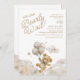 Um belo convite de chá de fraldas neutro para o teddy "nós podemos esperar". Você pode personalizar com os detalhes do seu chá de fraldas na tipografia moderna na moda. Projetado por Thisnotme©