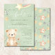 Celebrar a chegada com este charmoso convite de chá de fraldas com um fundo verde de sábio macio, um adorável ursinho de pelúcia pintado à mão e estrelas celestiais brancas. A delicada letra da escrita adiciona um toque elegante, enquanto a design de coordenação estrelada aumenta a estética do sonho. Este convite combina estilos bumerosos e florestais, fazer perfeito para um chá de fraldas neutro em termos de gênero. Totalmente personalizável para seu evento especial!