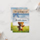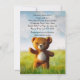 Urso peludo recheado adorável, parado num campo de grama verde com céu azul, em belo estilo aquarela. Compartilhe o seu chá de fraldas com amigos e familiares com este adorável convite para chás de fraldas de animais da floresta zoológico.