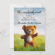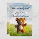 Urso peludo recheado adorável, parado num campo de grama verde com céu indefinido, em belo estilo aquarela. Compartilhe o seu chá de fraldas com amigos e familiares com este adorável convite para chás de fraldas de animais da floresta zoológico.