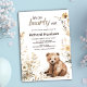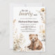 Celebre sua chegada com este convite de chá de fraldas "We Can Barly Wait" com um doce urso de aquarela rodeado de flores secas rústicas e tons beges neutros. Perfeito para um tema neutro em termos de gênero, floresta ou chá de fraldas de vassoura. Este design encantador adiciona um toque confortável e elegante ao seu evento e pode ser personalizado facilmente para o seu dia especial. Projetado com amor pelo HappyBearStudio.