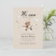Podemos Esperar! Convite de chá de fraldas bonito e moderno com um Urso giro voando num plano, ilustração de aquarela e letra de escrita manual. Em apenas alguns cliques, personalize-o com seus próprios detalhes e preferências. Disponível em cores diferentes, no impressão e no download.