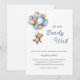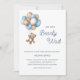 Celebre seu pequeno com este adorável convite temático de ursinho de pelúcia, apresentando um ursinho doce segurando balões azuis, marrons e brancos, é perfeito para um chá de bebê de menino. cores suaves, fontes divertidas e detalhes personalizáveis tornam fácil definir o tom para uma celebração calorosa.
