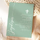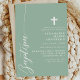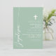 Celebre a ocasião sagrada de um batizado com este convite elegante em verde menta empoeirado. Com um design minimalista com letra moderna e uma cruz delicada, este convite é perfeito para convidar amigos e familiares a se juntarem a este evento especial. A cor suave e as linhas simples e limpas adicionam um toque de sofisticação e graça, tornando-o ideal para uma celebração tão significativa. Personalize os detalhes para criar um convite único e memorável para o batizado do seu filho.
