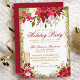 Convites Poinsettia Floral Champagne Feriado de Vidro