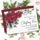 Poinsettia Holiday Floral | Janto Véspera de Natal O convite apresenta um design de férias elegante com poinsetos burgundy e flores brancas com pinheiro e folhagem holly verde. Personalize com seus detalhes de janto alinhados à direita, embelezados com "Véspera de Natal" em script de caligrafia em preto. Elaborado por ©Evco Holidays www.zazzle.com/store/evcoholidays