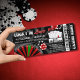 Se você está planejando um casamento em Las Vegas ou um evento temático em casino, nosso convite de casamento no estilo da Noite do Casino em Las Vegas é a opção perfeita para você. Este convite exclusivo e na moda foi projetado para parecer um ingresso para um jogo de pôquer ou uma noite no cassino. O convite apresenta um design preto elegante com sotaques brancos e vermelhos que lhe dão uma sensação clássica de Las Vegas. A frente do convite contém as palavras "Noite de Casino" e "sortudo no amor" em letras ousadas e chamativas e inclui todos os detalhes importantes de seu evento, como data, hora e local. Mas o que realmente diferencia esse convite é a sua design. Seus hóspedes podem guardá-lo como um lembrete do seu evento. No geral, nosso convite de casamento ao estilo da Noite do Casino de Las Vegas é uma maneira única e na moda para convidar seus convidados para o seu evento em Las Vegas ou no evento do casino. Então se você está procurando por um convite que realmente fará uma impressão, não olhe mais além do que esse design de um tipo.