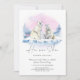 Um convite de festas de Revolução de Gênero Bebê do inverno. A design de Natal apresenta uma família de ursos polares com um filhote de ursos sentado numa laje de gelo, com uma elegante cor-de-água cor-de-rosa e fundo solar. O texto da tipografia negra diz "Ele ou ela"? Qual será o nosso filhote?