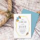 Este convite para o casamento apresenta uma incrível estrutura poligonal dourada com o seu texto, e três lindas conchas de aquarela em bege e azul no canto superior esquerdo e no canto inferior esquerdo. A parte de trás do convite é uma cor azul sólida.