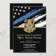 Honre a dedicação e o trabalho de duro de um novo oficial de polícia com este convite de formatura policial personalizável. Apresentando um crachá policial e a bandeira da polícia com riscas brancas e pretas e uma orgulhosa linha azul fina, esta design simboliza força, serviço e sacrifício. O convite é personalizado com o nome do formando em letras douradas, fazer-o como uma lembrança memorável para amigos, familiares e colegas oficiais. Perfeito para celebrar a graduação, promoção ou marco de uma academia de polícia na carreira de um futuro oficial. Convide seus convidados em estilo e mostre suporte para o membro mais novo da comunidade de linha azul fina.