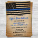 Convites de aposentadoria de linha azul fina ou convites para Festa de formatura de polícia. Celebre anos de serviço dedicado, ou comemore seu novo formando da academia de polícia, e convide amigos e família para a sua polícia com esta madre rústica Thin Blue Line para a aposentadoria da Polícia de Limiar Linha Azul e convites para formatura da academia de Polícia - design de bandeira americana em cores da Polícia, design angustiada. Este convite para aposentadoria de policial também é perfeito para convites para formatura na academia de polícia, mudança de local na personalização. Veja nossa coleção para combinar presentes de aposentadoria, presentes de graduação policial, favoritos para festas e suprimentos. COPYRIGHT © 2021 Judy Burrows, Black Dog Art - Todos Os Direitos Reservados. Convite de festas de Sinalizador Thin Blue Line