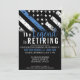 Este design apresenta uma bandeira da polícia com listras pretas e brancas, e uma fina faixa azul de linha também. O texto "A lenda está se aposentando" se senta acima de todos os detalhes partidários para os detalhes do polícia aposentado, xerife, capitão ou chefe do partido aposentado.