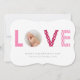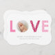 As listras e os polkadots cor-de-rosa e vermelhos enchem a palavra AMOR. Sua foto senta-se no O. Ajuste em um fundo branco.
