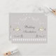 Convites elegantes do casamento nas máscaras de cinzento e do branco com uma ilustração à moda do vetor de duas pombas brancas bonitas que levam corações de prata bonitos e fitas glamoroso do ouro e as brancas. Há igualmente uns redemoinhos ornamentado e uns flourishes. Elegante, na moda, o chique convida com um olhar romântico da elegância do vintage. Aperfeiçoe para um primavera, um verão, uma queda/outono ou um evento do inverno. Eu tenho produtos de harmonização em minha loja. NOTE POR FAVOR - TODOS OS CONVITES EM ZAZZLE TÊM IMAGENS IMPRESSAS DO PLANO. Se você precisa o auxílio que personaliza seu produto por favor contacte-me através de minha loja. Eu estarei feliz ajudar.