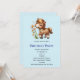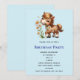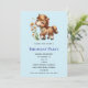 Um convite de aniversário com uma ilustração adorável. Um pequeno pônei marrom comendo alegremente margaridas.