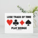 Mostre a sua atitude de ponte/ponte duplicada para a próxima festa da ponte com qualquer um destes convites! Apresentando os quatro naipes de placa junto com o truísmo da ponte dizendo "Ponte do Time Track de Perder"!