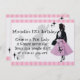 Um convite para o shimmer de pérolas de 5" x 7" com uma imagem de uma jovem camiseta de saia-poodle, uma cinza de luz no fundo, estrelas no estilo 50 preto e bordas de faixa rosa-a-rosa. Veja a etiqueta de presente, etiqueta e adesivo. Consulte a coleção inteira de Convite de Noventa 50 nos CONVITES | Seção Convites.