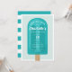 Acalme-se com estes convites de festas temáticos de picolé para a sua festa de aniversário de verão. Design de verão neutro em sexo divertido apresenta uma brilhante ilustração de picolé em um fundo aqua leve. Personalize com os detalhes do seu partido em letras brancas no estilo retrô.