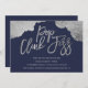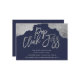 Um moderno, elegante e elegante falso trabalho feito com Pop clink em folha de papel prateado escrito em uma tipografia de escrita manual para o convite de festas de Ano Novo num elegante e personalizável fundo azul de meia-noite com falsos traços de folha de papel prateado. Um convite contemporâneo perfeito para Ano Novo, Natal e qualquer ocasião.