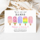 Este adorável convite apresenta picolés pintados manualmente em cores pastel.