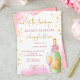 Pop do convite para o modelo de champanhe para download instantâneo, garrafa de champanhe, bolhas de ouro, salpicos cor-de-rosa, roteiro moderno.