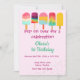 Este é um adorável convite do tema do verão "Pop sobre o futuro". Você pode personalizar isso para qualquer aniversário de idade ou até mesmo para uma festa de piscina de verão.