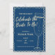 Celebrate the bride-to-be in elegant style with this champagne-themed bridal shower invitation. Featuring a rich navy blue background, delicate gold accents, and a modern champagne glass illustration, this design is perfect for a classy, bubbly-filled bridal celebration.
