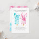 Sexo bonito e moderno revelam um cartão de convite de festas com ilustração aquosa de picolés a rosa e azul. O texto diz "Qual será o bebê doce? Menino ou Menina?" Perfeito para uma festa de gênero no verão.