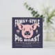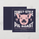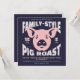 Reúna a família, é hora do churrasco! Convide toda a família para desfrutar de uma noite ao redor do fogo, ótima comida e boa companhia, e não importa qual seja a ocasião. Este convite tem uma ótima tipografia esticada em torno do rosto de um porco rosa. Modelos fornecidos para personalizá-lo. Fundo azul-marinho. Perfeito para encontros familiares, pequenas reuniões de família, festas de "brinde e zombaria" de noivado, festa após formatura ou uma celebração de boas-vindas em casa.