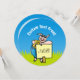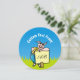 Um porco legal com óculos escuros sobre grama verde sob o céu azul com um sinal pronto para passar sua mensagem.