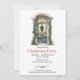 Design clássico de Cozy para convite de festas de Natal com aquarela de madeira porta de Natal decorada arco vermelho festivo e tipografia elegante.