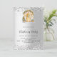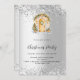Um fundo elegante, com aspecto prateado e confete. Decorado com uma entrada acolhedora decorada com uma árvore de Natal e decor de pinheiro verde. Festa de Natal escrita com um roteiro de estilo muito tenso e moderno. Personalize e adicione as informações de sua parte.