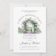 Convite de festas personalizável de casamento do Jardim com porta de jardim floral de cor d'água com rosas brancas. Tipografia de cinzas personalizável.