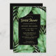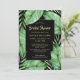 Posicione um chá de panela elegante com uma vibração tropical com este design de convite extremamente elegante com folhas tropicais exuberantes e frondes de palma em volta de um quadro retangular preto contendo os detalhes do seu evento. É uma escolha fabulosa para festas com tema tropical. Personalize o texto no modelo de design com seus detalhes. Você pode alterar o texto e adicionar ou remover linhas de texto conforme necessário para atender às suas necessidades.