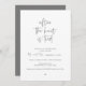 Elegantemente anuncie sua alegria para sempre com nossa carta de convite para celebração de elopementos de casamento, "Feliz Para Sempre Depois de Brunch". Personalizado para casais continuando sua história de amor, este convite atinge um equilíbrio perfeito de sofisticação e charme, estabelecendo a cena de um evento inesquecível. Apresentando uma design de cinza escura contemporânea, ele adiciona um toque de graça de eterno ao seu dia especial. Projetado pelo talentoso TeeshaDerrick, este convite é uma expressão na moda do seu amor duradouro.