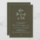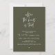 Elegantemente anuncie sua alegria para sempre com nossa carta de convite para celebração de elopementos de casamento, "Feliz Para Sempre Depois de Brunch". Personalizado para casais continuando sua história de amor, este convite atinge um equilíbrio perfeito de sofisticação e charme, estabelecendo a cena de um evento inesquecível. Com um design de verde-oliva contemporâneo, ele adiciona um toque de graça eterno ao seu dia especial. Projetado pelo talentoso TeeshaDerrick, este convite é uma expressão na moda do seu amor duradouro.
