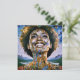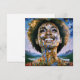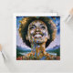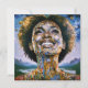 "Alma Ouro, Céus Infinitos". Uma mulher afro-moderna radiante rodeada por detalhes ouros e cósmicos simboliza força e transcendência espiritual. Misturando abstrato e elementos surreais, esta peça exude inspiração e positividade, com o sorriso da mulher representando esperança, e força interior para um amanhã mais brilhante e unido.