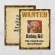 Convite de aniversário de estilo ocidental divertido, feliz e alegre com design de "poster desejado". Possui fundo em placas de madeira com papel vintage e sinal de desejado de marca. Excelente para o tema da festa ocidental do cowboy. Perfeito para uma festa de aniversário de meninos, grande aniversário ou qualquer aniversário de idade. Personalizar online!