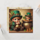 Rua, convite para a festa de Patrick com uma criança adorável vestida e um duende do pote do ouro. Um retrovisor ou uma pintura com um design no estilo de pergaminho na parte traseira da placa. Alegra-te à força e à celebração. Personalize-o com suas informações na parte traseira do convite. Ver todas as minhas compras em https://bit.ly/SandyspiderStores