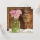 Mantenha a celebração no dia seguinte à cerimônia de casamento com o charmoso Convite para Brunch Pós-Casamento no Campo em estilo rústico com Pote de Pedreiro e Margaridas Rosa. Este convite personalizado para Desjejum ou Almoço Pós-Casamento em estilo ranch clássico e casual apresenta uma fotografia floral encantadora de um pote de vidro cheio de flores de margaridas rosa e um fundo de madeira de celeiro rústico castanho desgastado.