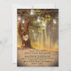 Convites de casamento elegantes e vintage com um lago romântico em um cenário florestal, uma velha árvore rústica com um coração esculpido e suas iniciais dentro, potes de mason com luzes cintilantes e um modelo de casamento personalizável.