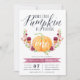 Caia no amor com estes convites de festas elegantes rústicos do aniversário de criança. Características que de design uma abóbora alaranjada da aguarela decorou com Borgonha, flores cor-de-rosa e alaranjadas e folha verde. "Nossa abóbora pequena está girando" aparece através da parte superior na rotulação chique do roteiro da caligrafia, com a idade da sua criança inscreida na abóbora. Amostra mostrada para um primeiro aniversário. Personalize com seus detalhes da festa de aniversário abaixo na rotulação rica dos azuis marinhos. Os cartões invertem ao marsala contínuo de Borgonha.
