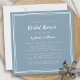 Design de convite quadrado simples e empoeirado, azul e branco, apresenta um simples design minimalista contemporâneo com uma dupla borda de quadros em branco sobre um fundo azul de tendência. Personalize o design de chá de casamento de noiva com seus detalhes em letras de tendências e scripts em branco. As costas combinam em azul sólido. Para obter melhores resultados, substitua os detalhes do modelo com seus próprios detalhes, deixando espaço entre os parágrafos como no exemplo e use todas as letras minúsculas quando especificado. Envie um email para invitationsuites@gmail.com com perguntas ou solicitações personalizadas.
