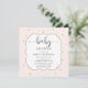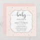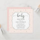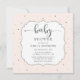 Este convite quadrado de chá de fraldas apresenta um padrão de bolinhas pastel com um quadro decorativo sobre um fundo cor-de-rosa pincelado.