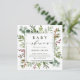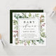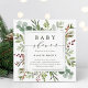 Este convite para chá de fraldas apresenta cor d'água pintada de eucalipto, folhas verdes, bagas vermelhas, ramificações de pínus e um quadro quadrado verde com na moda caligrafia. Para personalização mais avançada deste design, clique no link "Personalizar mais". Itens correspondentes também estão disponíveis.