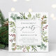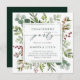 Este convite à festa de noivado apresenta cor d'água, eucalipto, folhas verdes, bagas vermelhas, ramos de pínus, e uma falso estrutura quadrada de ouro com caligrafia na moda. Para personalização mais avançada deste design, clique no link "Personalizar mais". Itens correspondentes também estão disponíveis.