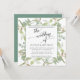 "Convite para Casamento de Praça de Aquarela Eucalyptus Rustic Eucalyptus Foliage." Piso com quadrado interior branco (você pode adicionar uma cor de fundo se desejar). Convite de formato quadrado. Simples. Moderno. Elegante. Ideal para um casamento em todas as estações, esta trabalho de arte de cor de água de folhagem arborizada, magra e botânica, foi criada por uma artista internacionalmente licenciada, Audrey Jeanne Roberts. Direitos autorais.